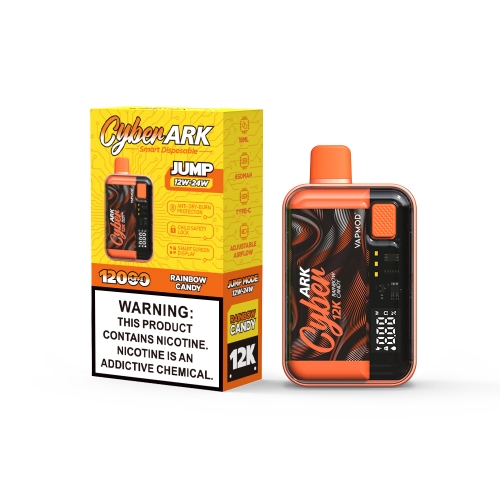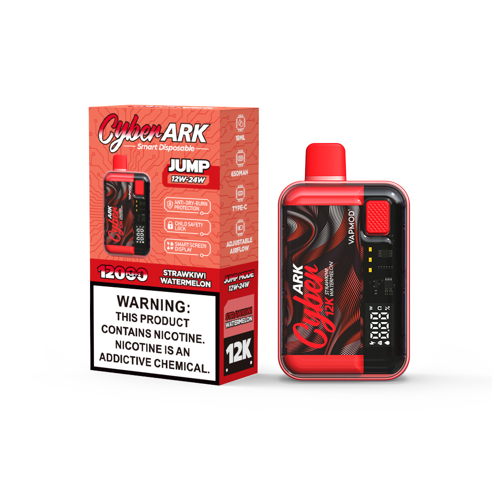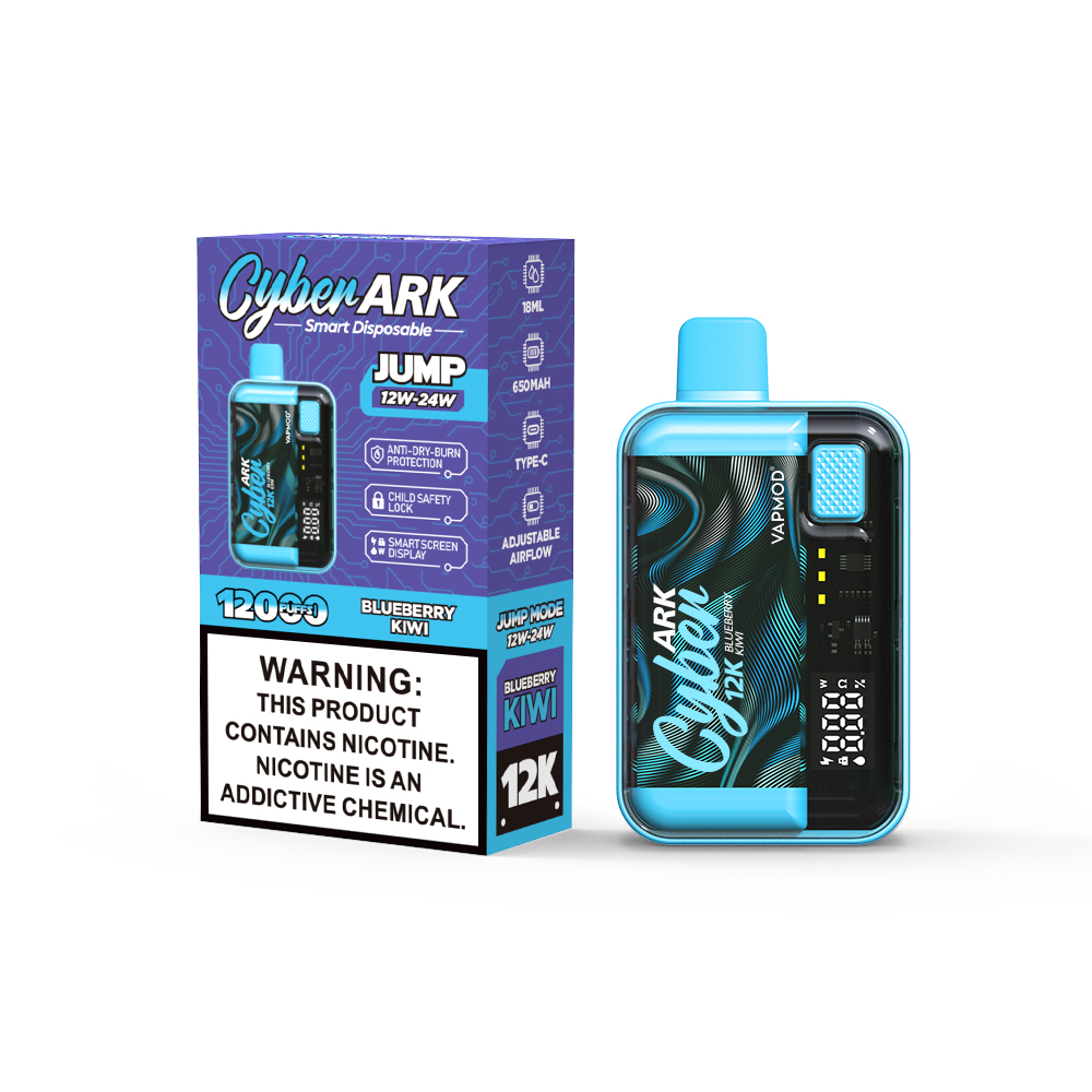 The Vapmod Cyberark12000 is a rechargeable disposable vape offering up to 12000 puffs . It boasts a prefilled 18ml e-liquid capacity with 5 % nicotine salt , powered by a 650mAh battery .It features a jump mode function for adjusting wattage (12/24W) .It equipped with alternating dual mesh coils which brings you a smoother, more flavorful vaping experience.