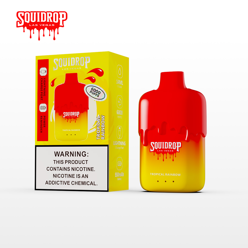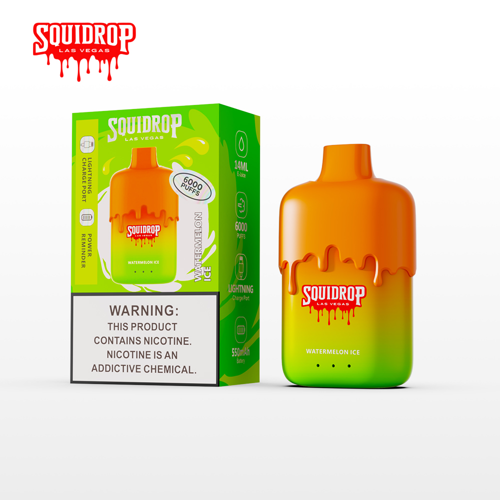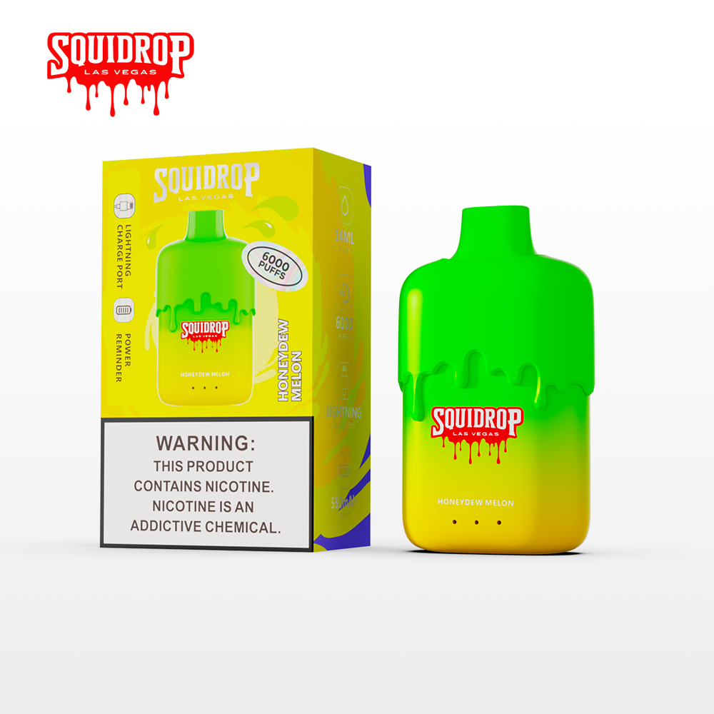 The Squidrop 6000 offers a plethora of impressive features to elevate your vaping experience. With a generous 14ml of e-liquid capacity, you'll enjoy an extended vaping session without the need for constant refills. Each Squidrop 6000 Disposable delivers an impressive 6000 puffs, ensuring long-lasting satisfaction.Equipped with a powerful 550mAh battery, this device ensures consistent performance and flavor delivery until the last puff . The lightning charge port allows for rapid charging, minimizing downtime and keeping you vaping without interruption.